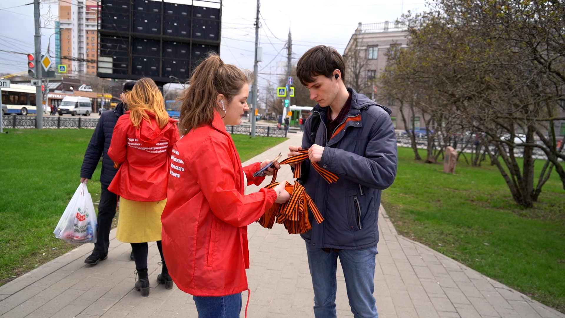 В Тульской области продолжается акция «Георгиевская ленточка». Так, например, 30 апреля получить символ памяти и уважения к подвигу ветеранов можно было на Площади Победы в Туле.