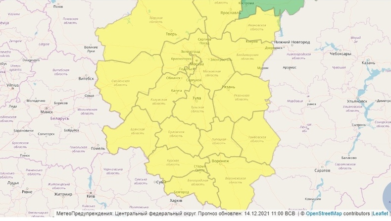 Период метеопредупреждения в Тульской области продлен до 16 декабря