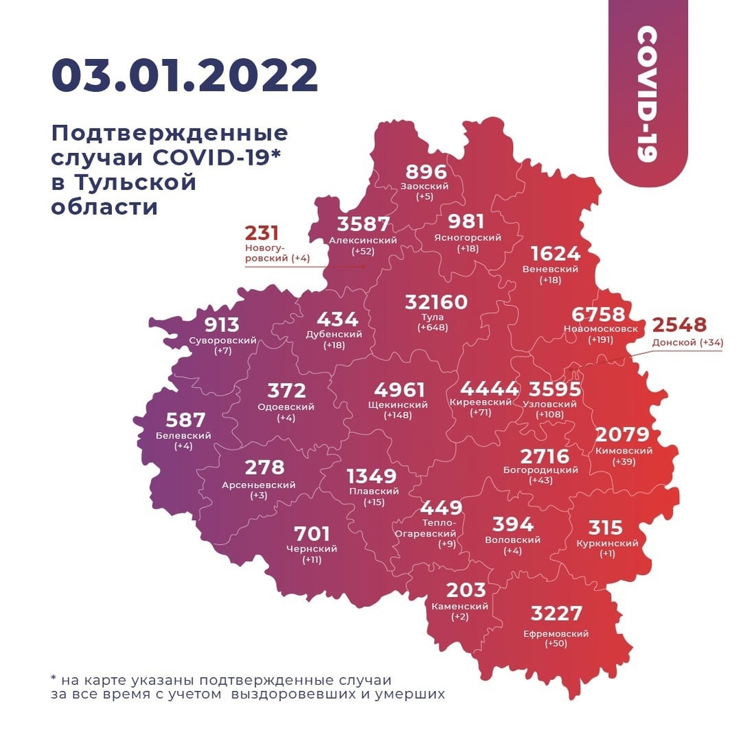 Первое место по числу новых заболеваний ковидом заняла областная столица. В Туле зарегистрировали 648 зараженных.