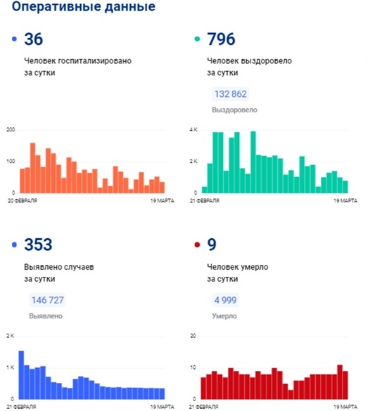 19 марта в Тульской области стало известно о 353 новых заболевших коронавирусом. Из них 36 человек были госпитализированы. За все время пандемии заболели 146 727 жителей региона.