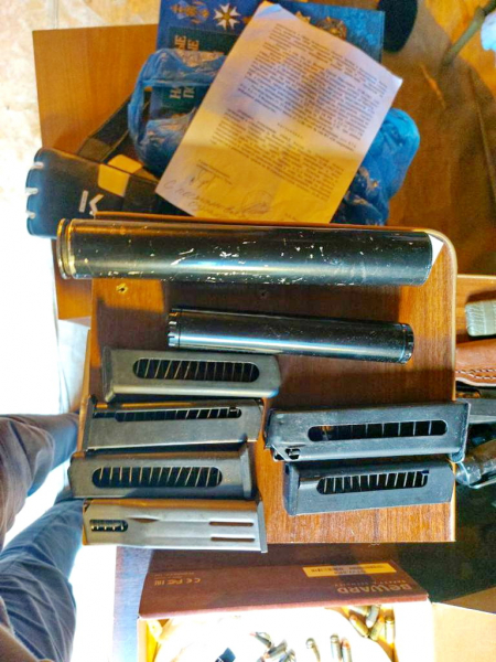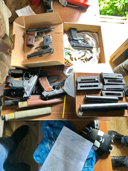Полицейские установили личность подозреваемого. Это оказался 45-летний рабочий одного из местных предприятий. Во время обыска в его гараже обнаружили и изъяли пистолеты ПМ, обрез винтовки «Мосина», гладкоствольное охотничье ружье, патроны калибра 9 мм, а также к гладкоствольному охотничьему оружию, пластиковую емкость с находящимся внутри веществом, похожим на порох, предметы, похожие на крупнокалиберные снаряды. Также в гараже обнаружили токарный станок, специализированные инструменты, развертки, матрицы, чертежи, блокнот с записями, ноутбук.