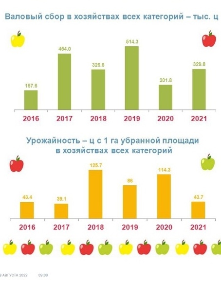 К этому дню ведомство опубликовало статистику сбора урожая в Тульской области, динамику засаженных плодовыми деревьями площадей, а также стоимость самих плодов. Оказалось, что на 8 августа средняя цена яблок составила 122,33 рубля.