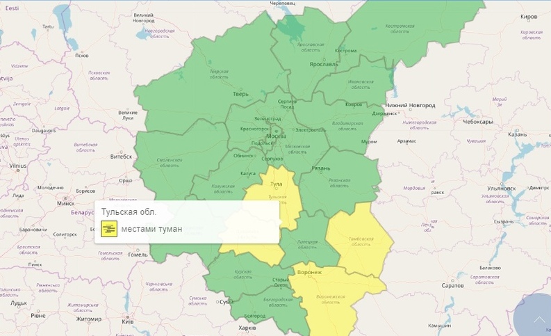 В Тульской области объявлен желтый уровень погодной опасности из-за тумана