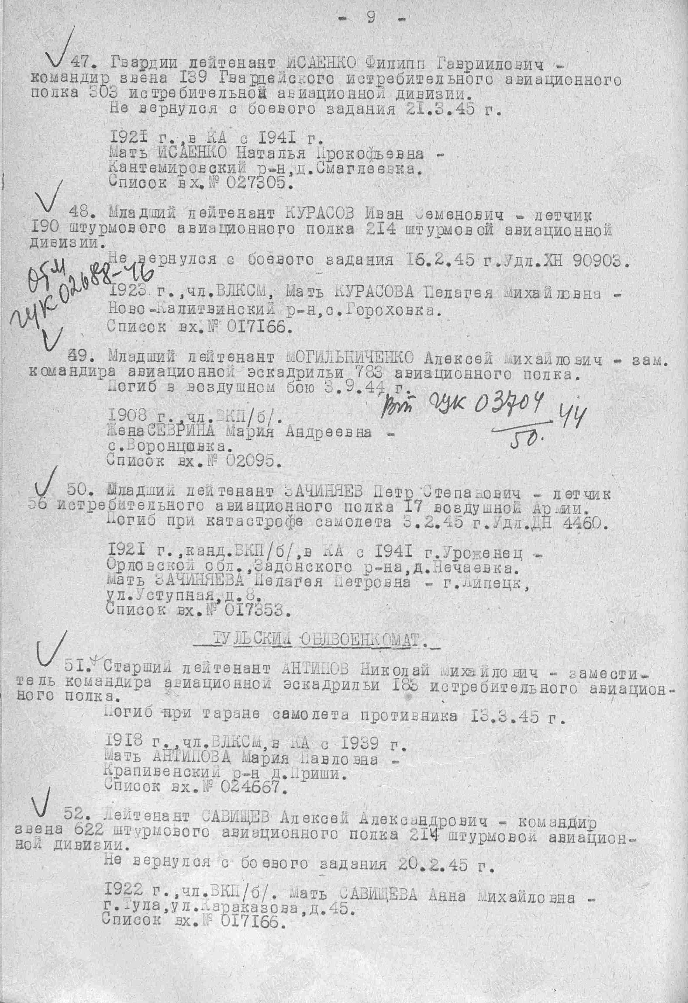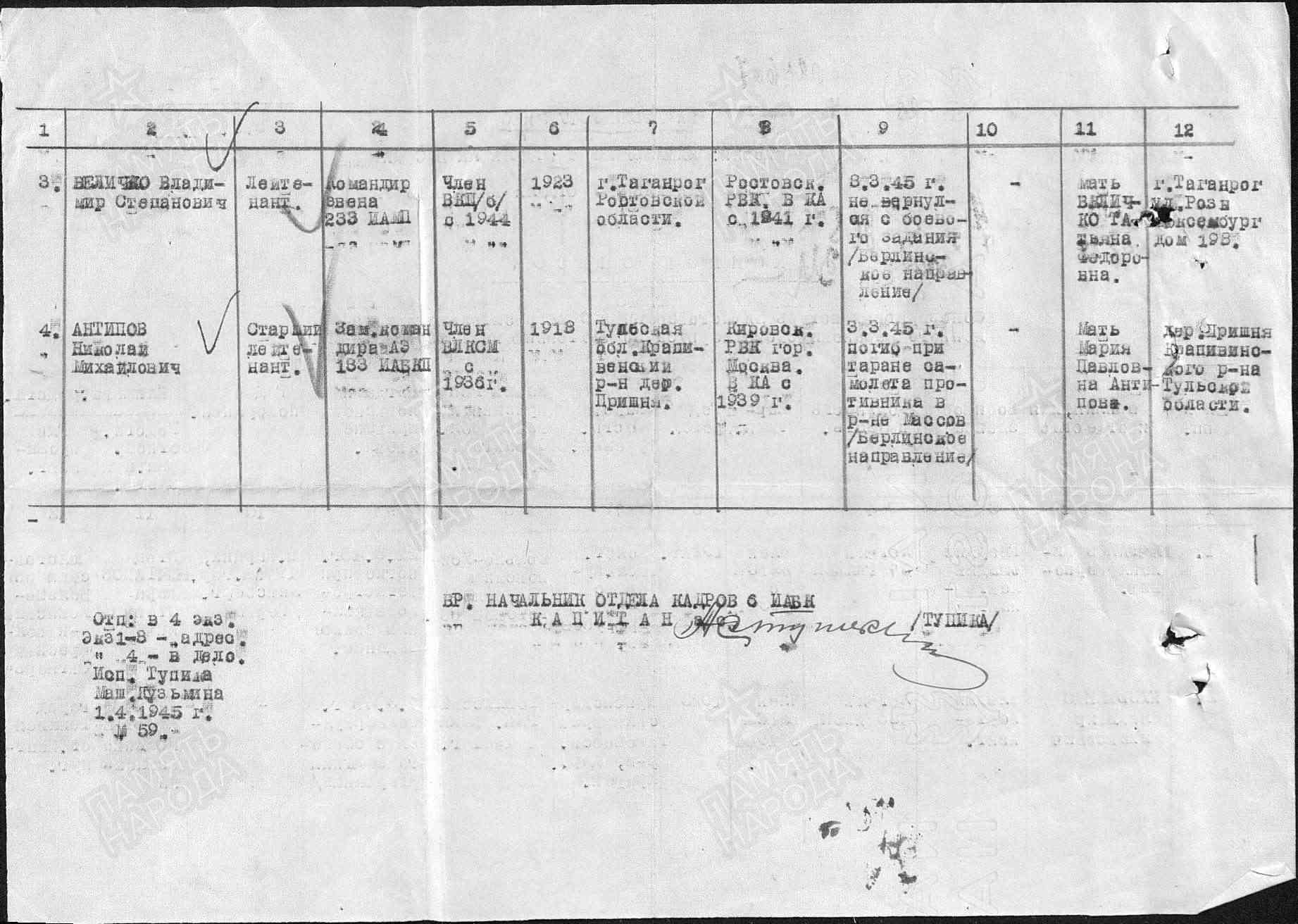 В Тульской области ищут родных Николая Михайловича Антипова 1918 года рождения для вручения награды «Летчик-Талалихинец». Поиск объявили Межрегиональная патриотическая общественная организация «Талалихинцы» и Московский поисковый отряд «Обелиск».