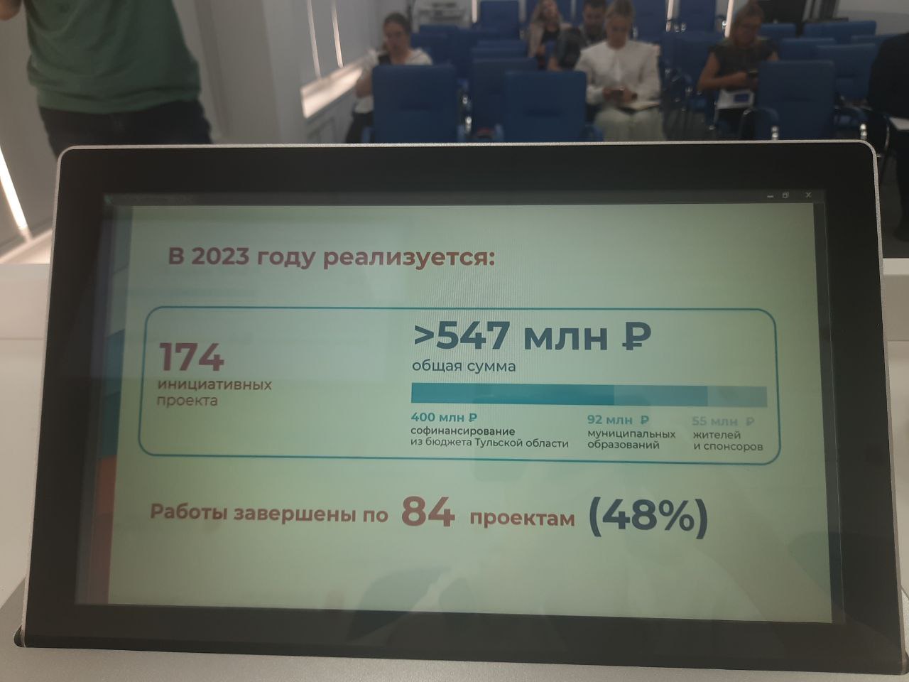 Между тем, в 2023 году реализуется 174 инициативных проекта на общую сумму почти в 550 миллионов рублей. Из них 400 миллионов – это софинансирование из регионального бюджета, а остальное – средства из муниципального бюджета, а также софинансирование спонсоров и жителей.