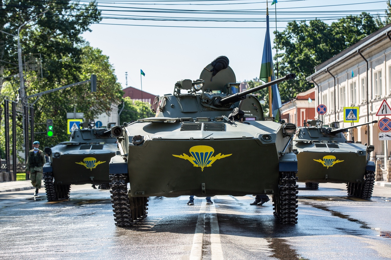 Парадом командовал заместитель командира 106-й гвардейской воздушно-десантной Тульской Краснознаменной ордена Кутузова дивизии, гвардии полковник Сергей Серпухов.