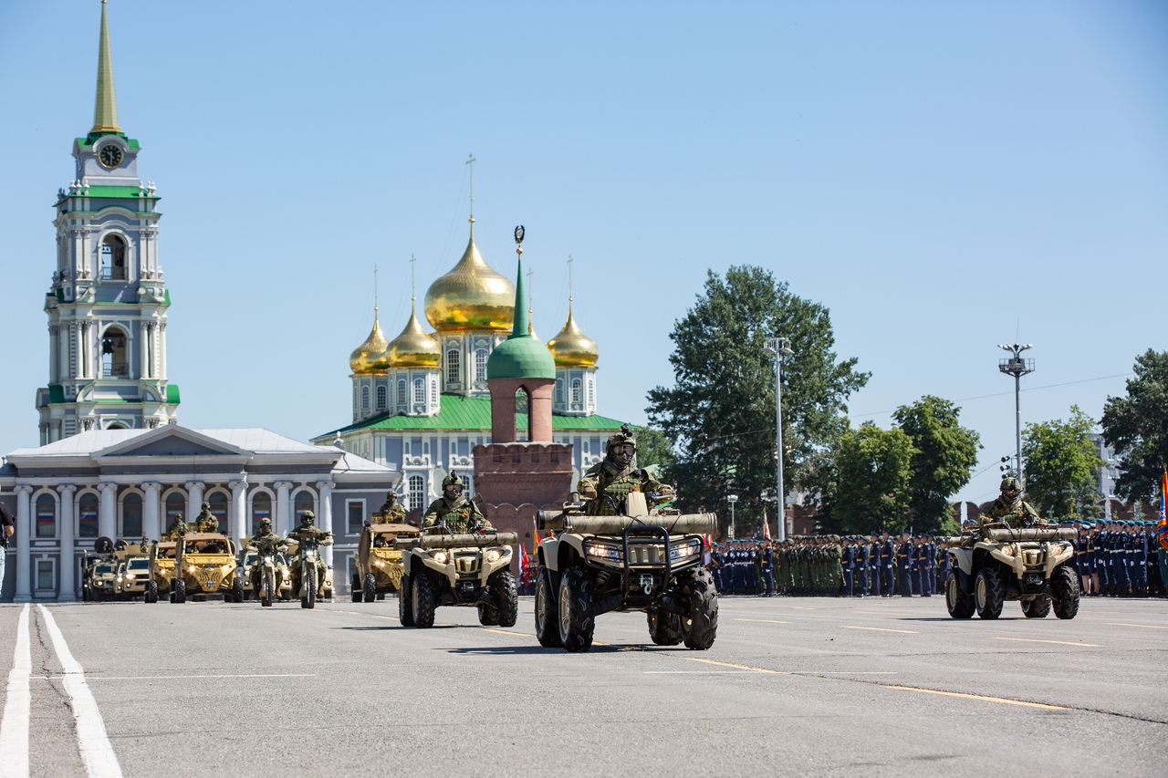 Принимал Парад начальник Тульского территориального гарнизона – командир 106-й гвардейской воздушно-десантной Тульской Краснознаменной ордена Кутузова дивизии, гвардии полковник Евгений Тонких.