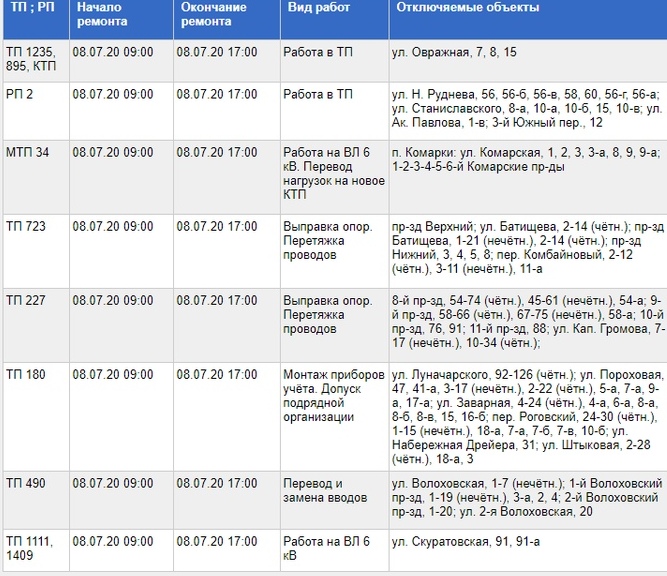 8 июля часть Тулы останется без электричества