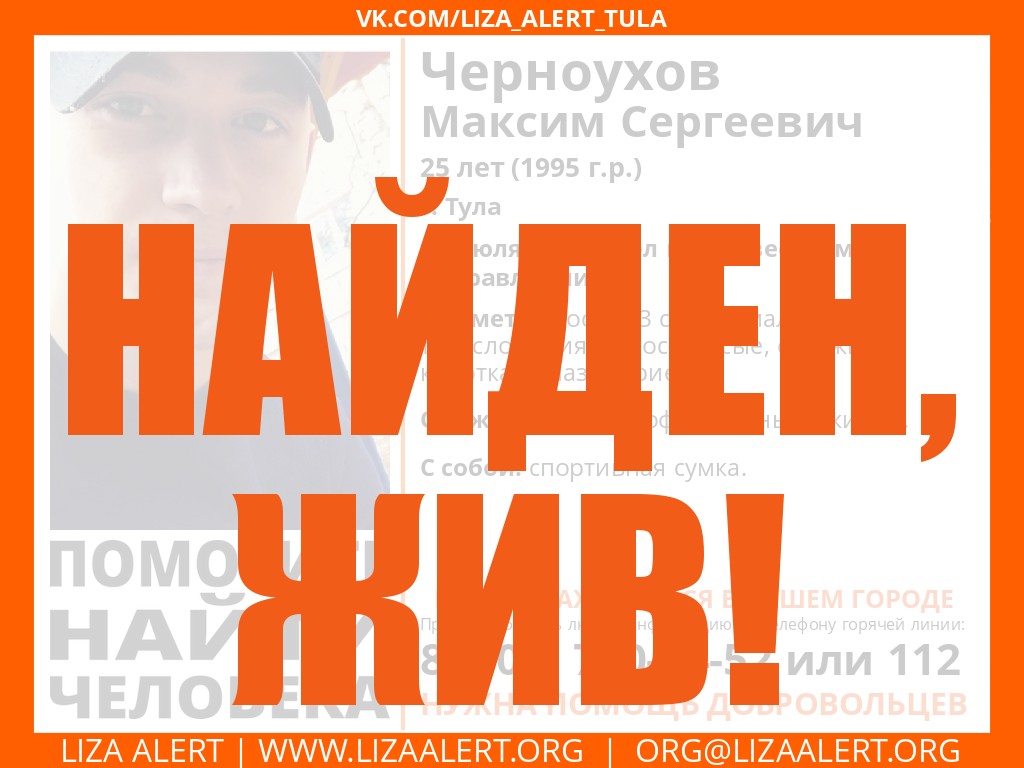 В Туле нашелся молодой человек, пропавший 9 июля. 25-летний парень, которого искали 3 дня, найден живым. Об этом сообщает отряд "Лиза Алерт". Черноухов Максим Сергеевич из Тулы ушел из дома 9 июля 2020 года.