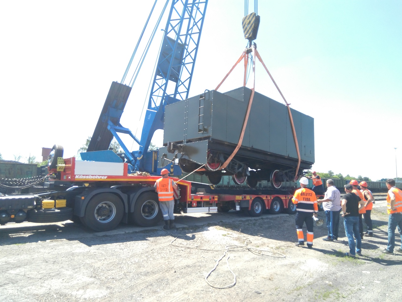 Затем состав перевезли на станцию "Присады" Киреевского района. Отсюда экспонат частями перевезут в пункт назначения - парк "Патриот". Конструкции весом в десятки тонн транспортируют магистральными тягачами на специальных прицепах - низкорамных тралах. Автопоезд высотой в 5 и длиной 20 метров сопровождают экипаж ДПС и автовышка, чтобы при необходимости демонтировать нависающие над дорогой конструкции.