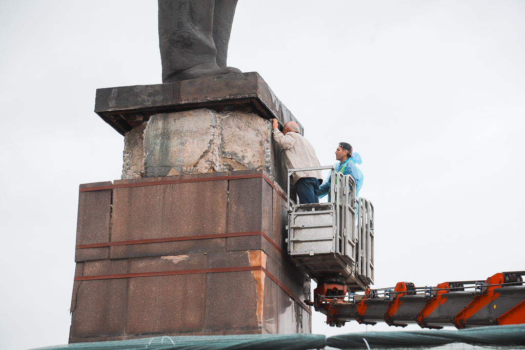 В Туле приступили к демонтажу гранитных плит на постаменте памятника Ленину