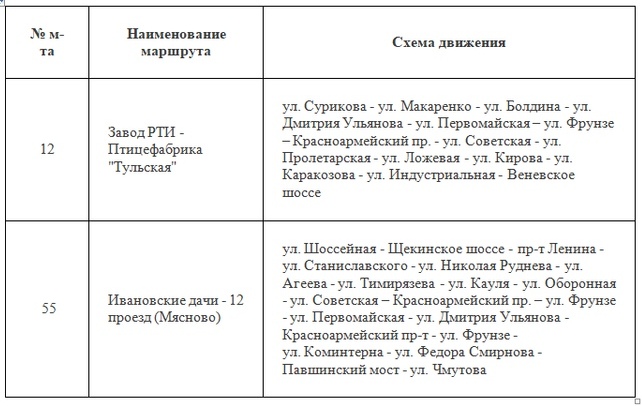 В это время движение автобусов по маршрутам №12 и №55 будет проходить по измененной схеме: