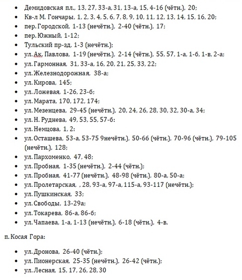 С 9:00 до 17:00 электричества не будет в домах по адресам: