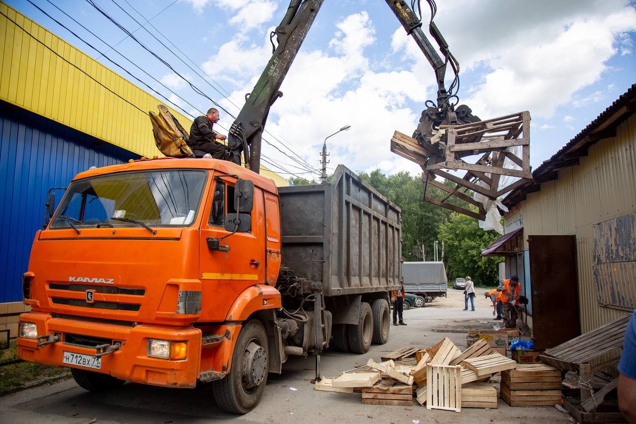 Участок улицы в районе остановки поликлиника жители используют для продажи грибов ягод и овощей с личных приусадебных хозяйств. При этом продукцию раскладывают на подстилках и фанерных ящиках, нарушая санитарные нормы и правила. Импровизированные прилавки демонтировали и вывезли на двух бортовых «Камазах».