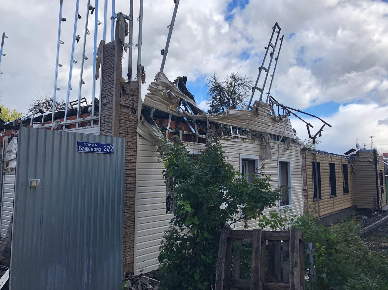 После пожара: в Туле жители сгоревшего на улице Баженова дома разбирают руины