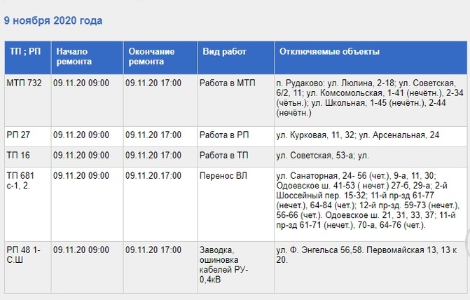 Публикуем список адресов, коорые затронет отключение. Посмотрите, нет ли в списке вашего адреса.