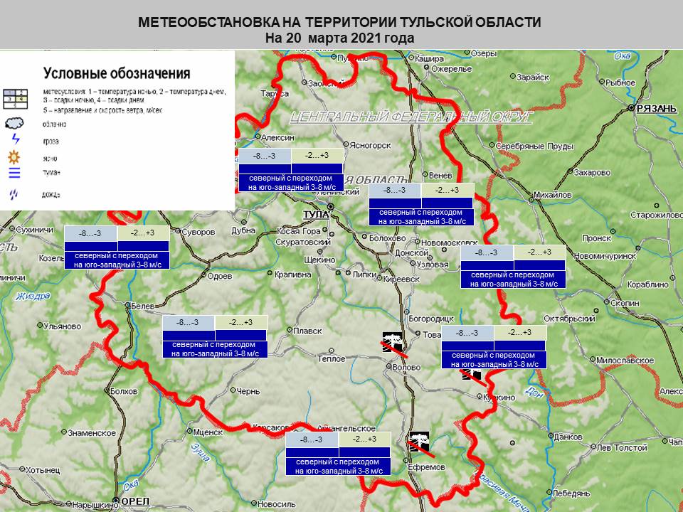 Такая информация опубликована на сайте ГУ МЧС. Перед тем, как выйти на улицу, можно посмотреть на улицу с помощью камер онлайн "Первого Тульского".