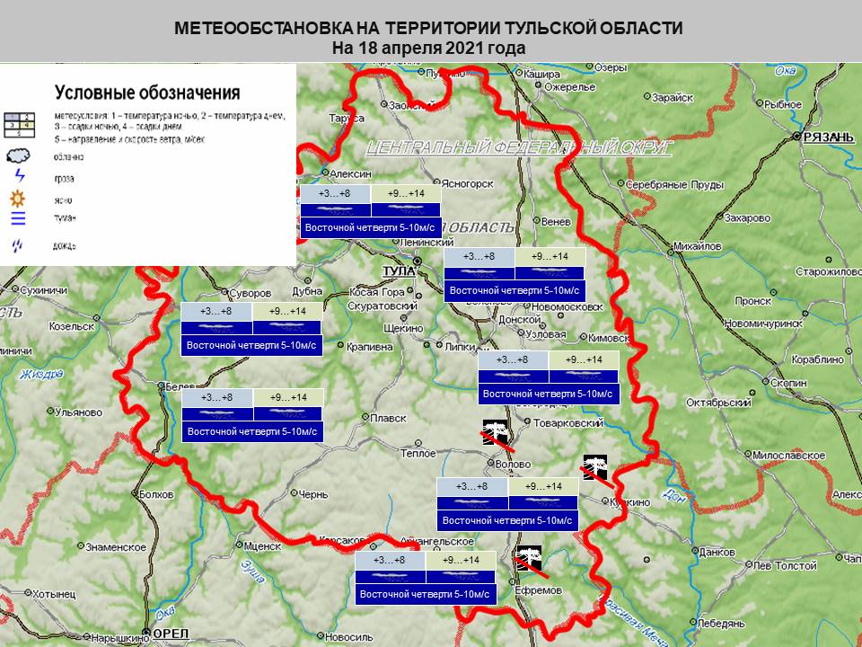 Такой прогноз опубликован на сайте ГУ МЧС России по Тульской области.
