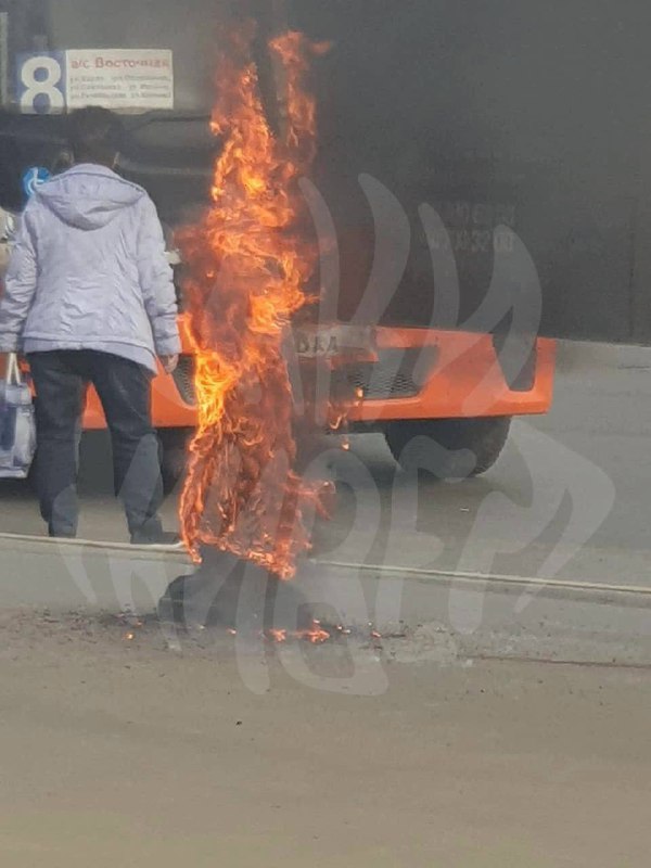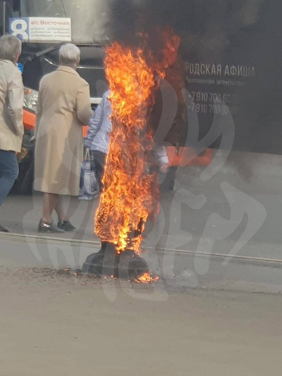 Также автор фото отметил невозмутимость бабушек, которые ждут автобус, а рядом с ними полыхает огонь.
