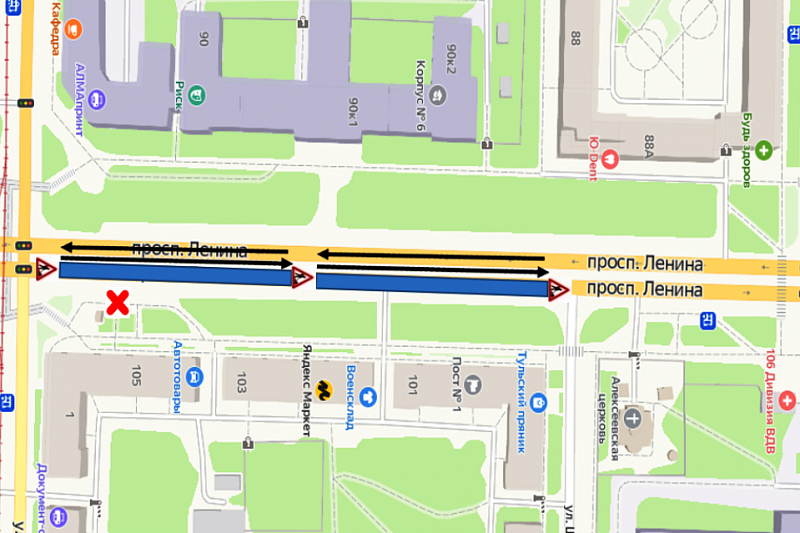 На выходных в Туле на проспекте Ленина три раза поменяется схема движения