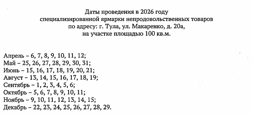 Непродовольственная ярмарка на улице Макаренко, 20а, будет работать по этим датам: