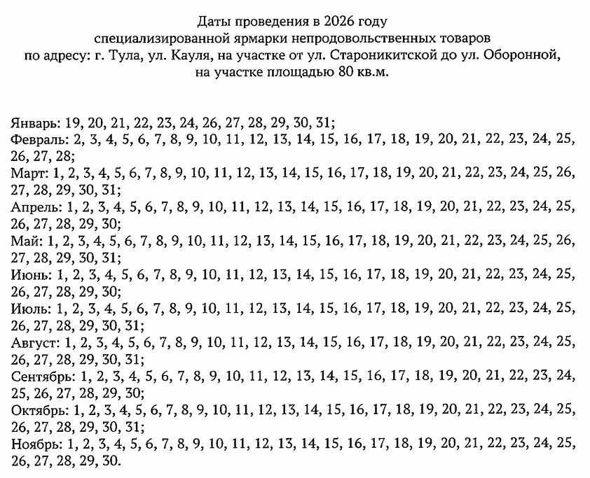 Сразу четыре ярмарки появятся в Туле в 2026 году. Такая информация появилась на официальном сайте сборника правовых актов и иной официальной информации муниципального образования город Тула.