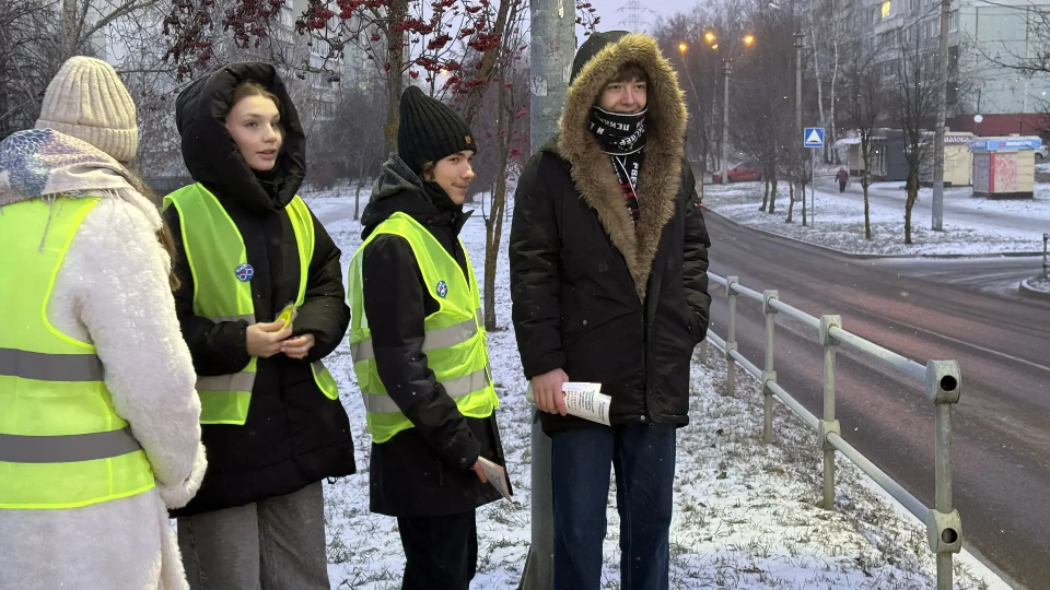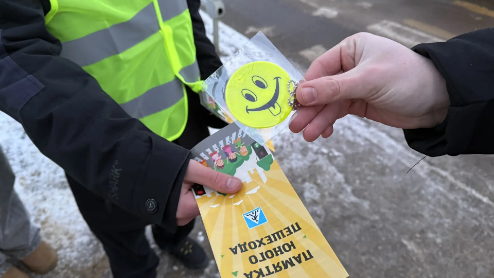 Сотрудники ГАИ вместе с учениками ЦО №40 провели акцию «Безопасный детский переход»: они напомнили пешеходам о правилах дорожного движения и подарили светоотражающие брелоки.