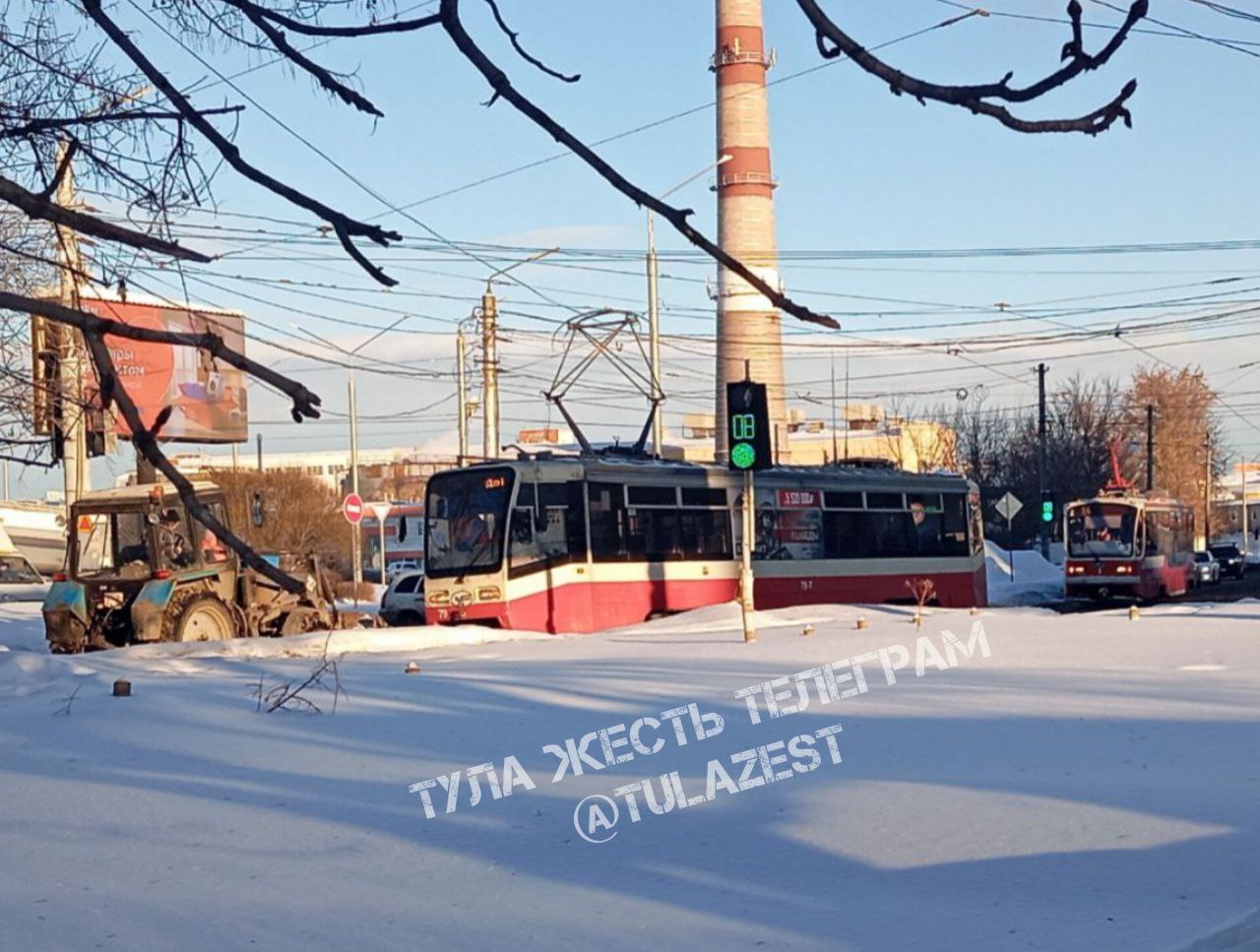 В Туле на улице Фрунзе остановилось движение трамваев 9 февраля