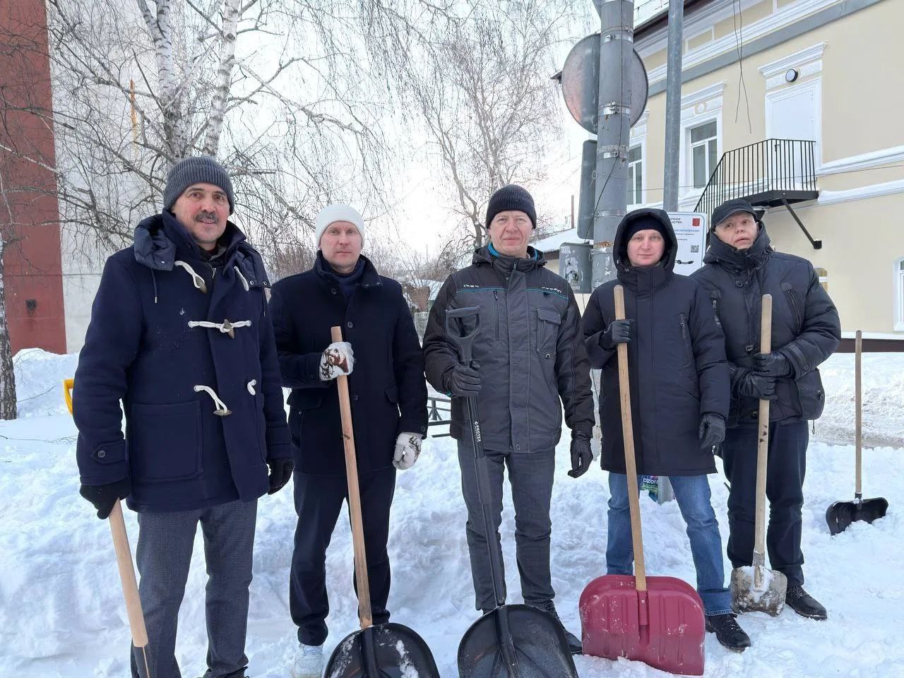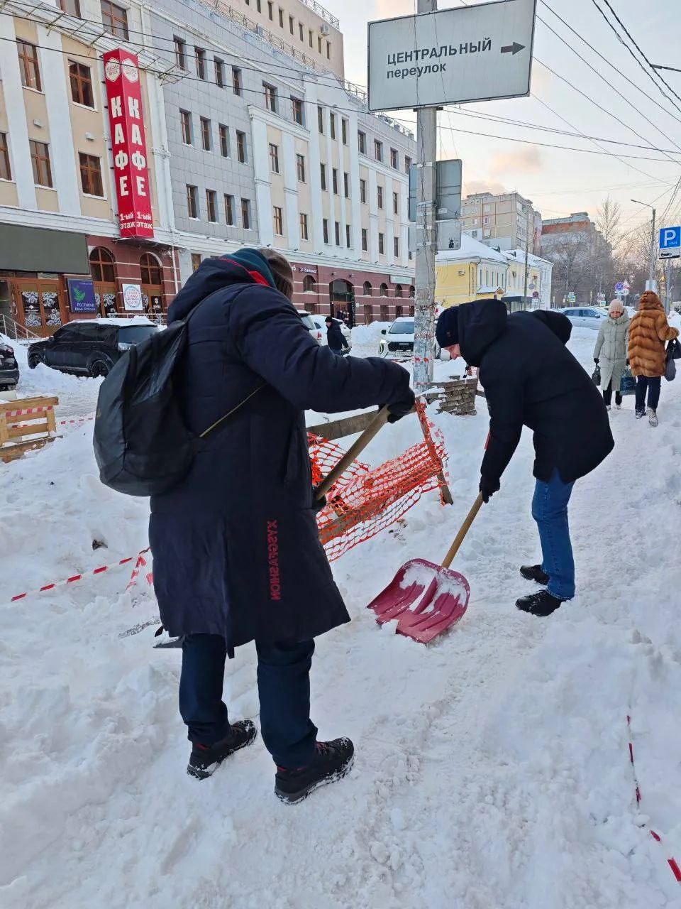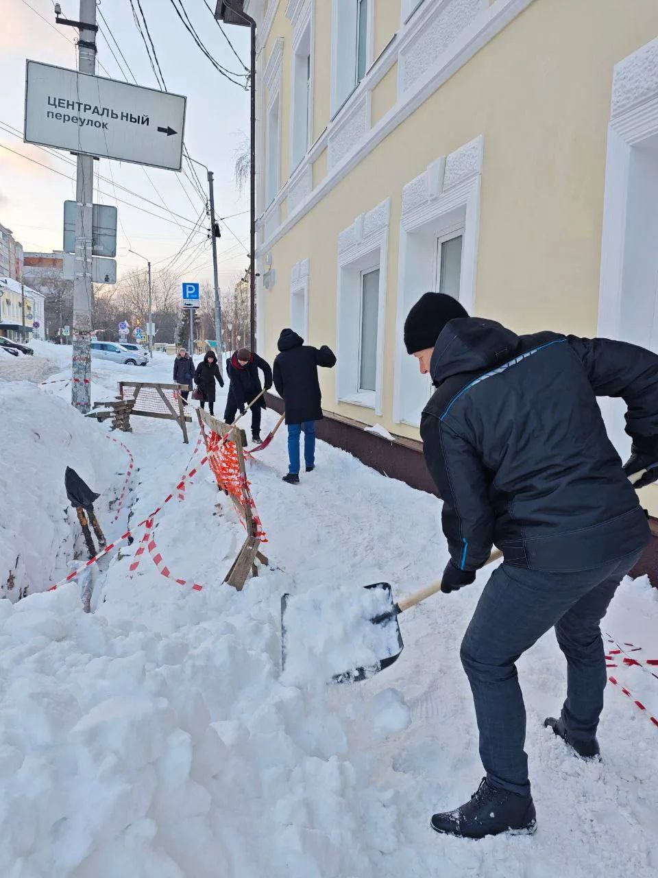Одними из первых в уборке улиц от снега приняли участие сотрудники министерства промышленности Тульской области. Они расчистили дорожку к Городской больнице №7 на улице Каминского.
