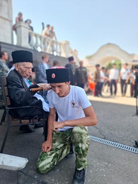 После чего иерей Евгений обратился к собравшимся с наставлением, рассказав о значении казачьего движения в возрождении православной духовной культуры и важности соблюдения казачьих традиций. Пастырь пожелал новобранцам крепкого здоровья и успехов в служении Богу, Церкви и Отечеству. Семиреченские казаки и казачки получили благословение на обучение в Московском университете технологий и управления им. К.Г.Разумовского (Первый казачий университет) и напутствия от Совета старейшин.
