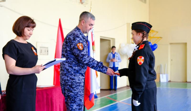 В торжественной обстановке офицер Росгвардии зачитал приказ о присвоении наиболее отличившимся кадетам Росгвардии специальные звания «вице младший сержант», «вице сержант» и «вице старший сержант» за активную жизненную позицию, хорошую учебу, участие в военно-патриотических мероприятиях кадетского класса по итогам года и вручил им заслуженные погоны. Помимо этого, в рамках мероприятия кадеты Росгвардии были отмечены грамотами и похвальными листами.